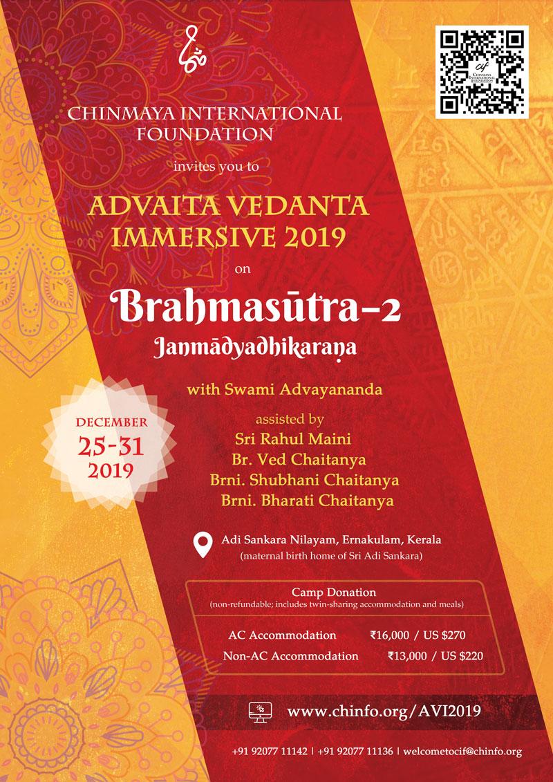 The Advaita Vedanta Immersive is an opportunity for seekers to attain clarity and appreciation of essential and deep concepts of Advaita-vedānta in the span of one week. This year the text for study is the second sūtra of the Brahmasūtra (janmādyadhikaraṇa).