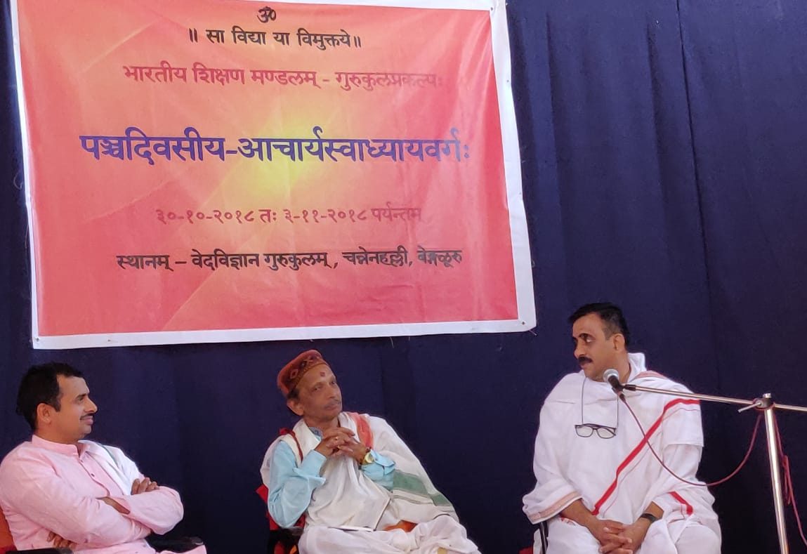 Bharatiya Shikshan Mandal organised a meet at the Veda Vijnana Gurukula campus, Bengaluru from 30th October to 2nd November as a part of its Gurukul project. The project aims at bringing the Gurukul system into the mainstream. Most participants in this meet were philanthropists interested in starting a Gurukul, ready with land, money and other resources required to establish a Gurukul in their respective areas from all over India, but waiting to get guided regarding how to go about it.